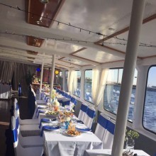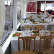 Atpūtas kuģītis „Vecrīga” – modernākais un populārākais pasažieru kuģītis Latvijā - spēj uzņemt līdz pat 150 pasažieriem.
