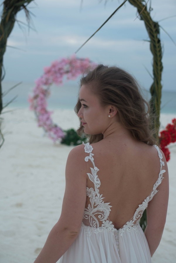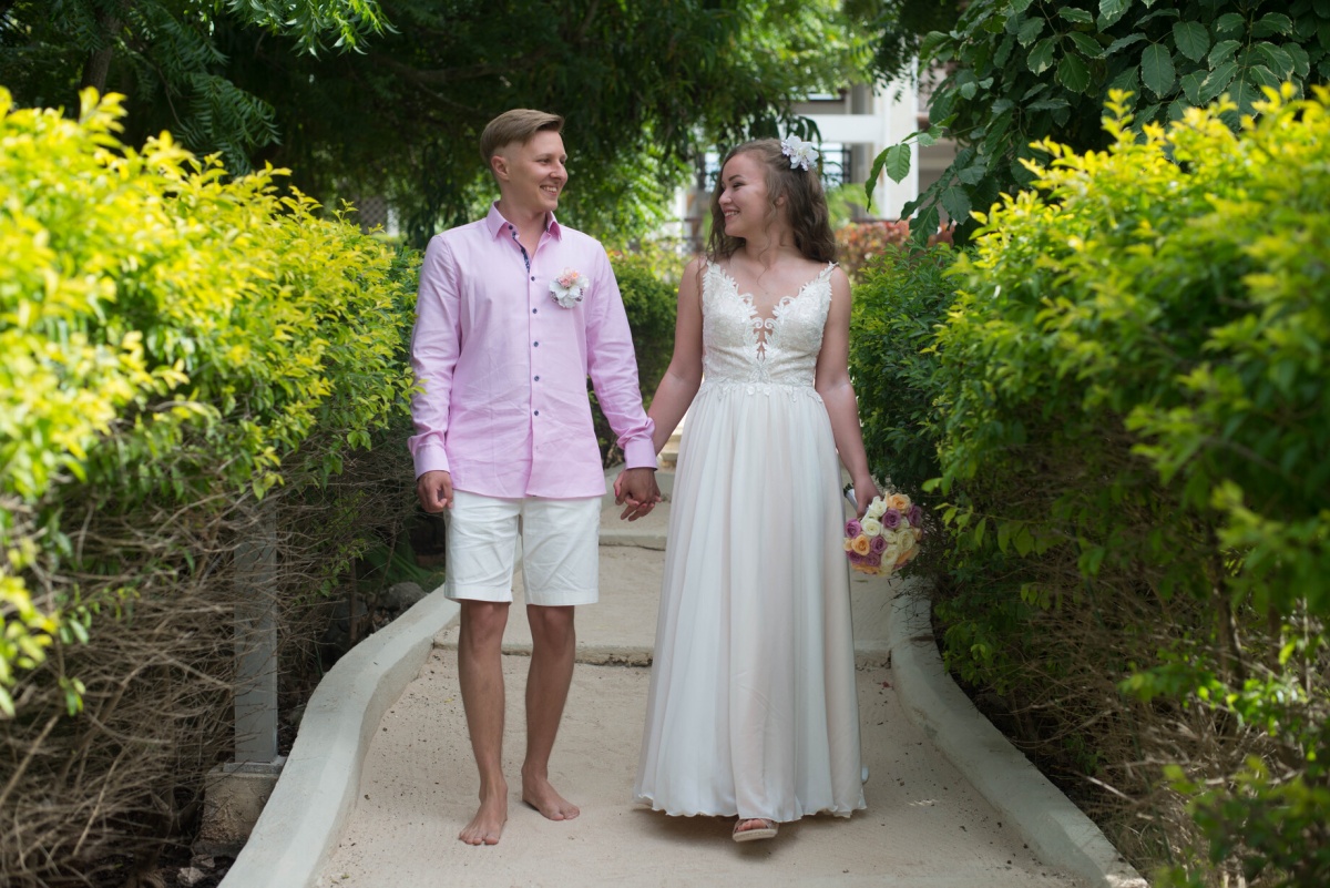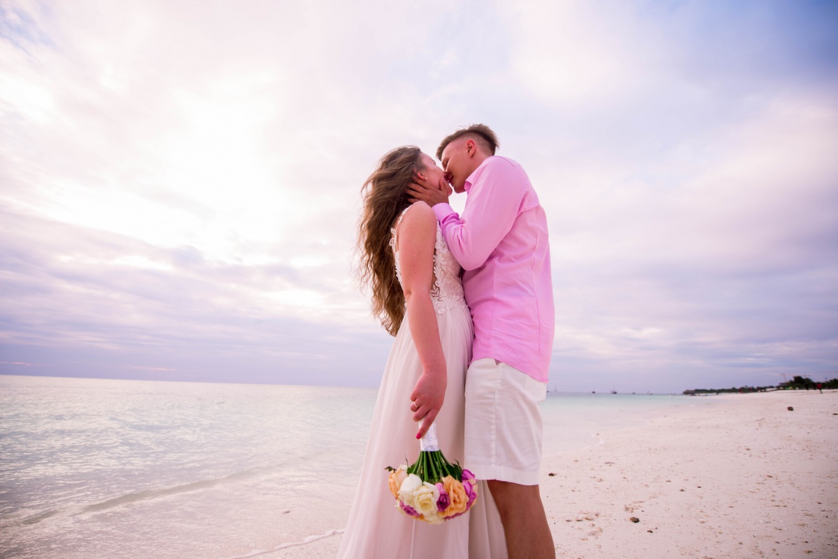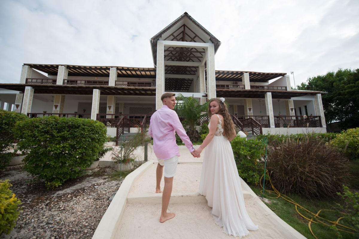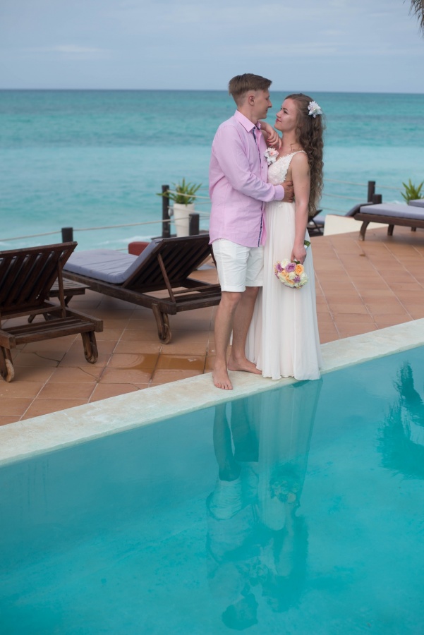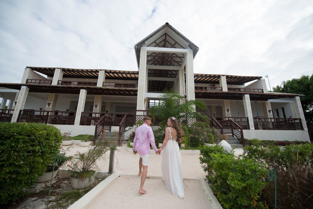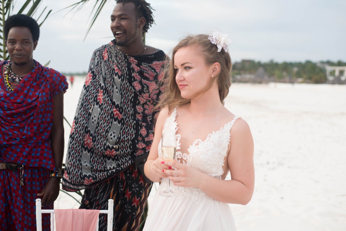 Vienīgās grūtības mums sagādāja neparastie laika apstākļi. Zanzibārā ir augsts mitrums un gaisa temperatūra dažkārt sasniedz +40. Iesaku visām meitenēm, kuras plāno kāzas šajos platuma grādos, atteikties no apjomīgām, smagām kleitām par labu gaišām un gaisīgām, nenēsāt papēžus un nemēģināt veidot sarežģītu frizūru - mitruma dēļ tā ātri zaudēs savu formu. Šeit modē ir absolūts dabiskums.