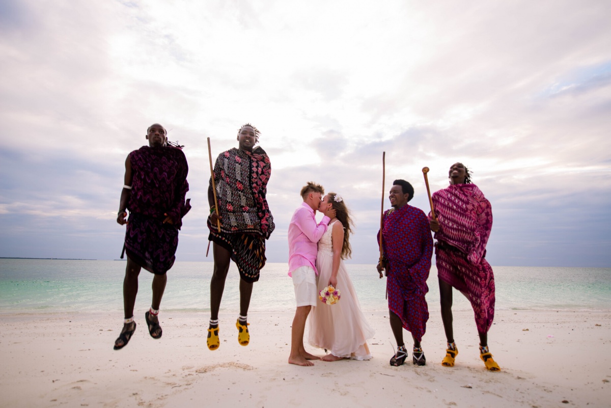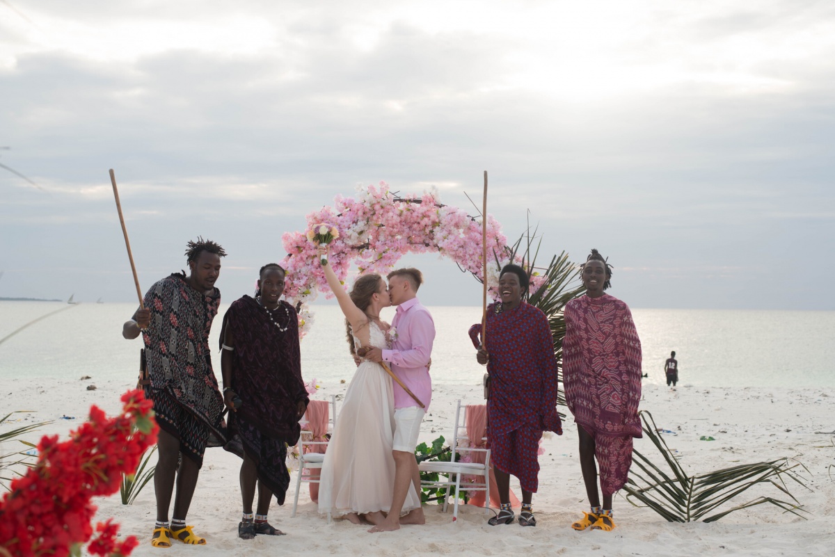 Mēs nolēmām izvēlēties oriģinālo variantu ar masaju cilts klātbūtni, lai gan jūs varat izvēlēties tradicionālu ceremoniju pludmalē vai viesnīcā. Mēs bijām pilnīgā sajūsmā, brīnišķīgas atmiņas par ceremoniju un romantiskas atpūtas mirkļi uz salas ilgi sildīs mūsu sirdis! Mēs joprojām pārskatām fotogrāfijas, apbrīnojot tirkīza ūdeni un sniegbalto pludmali. Un kādi satriecoši saulrieti ir virs Indijas okeāna!