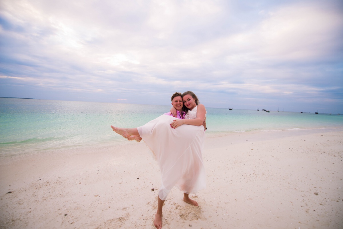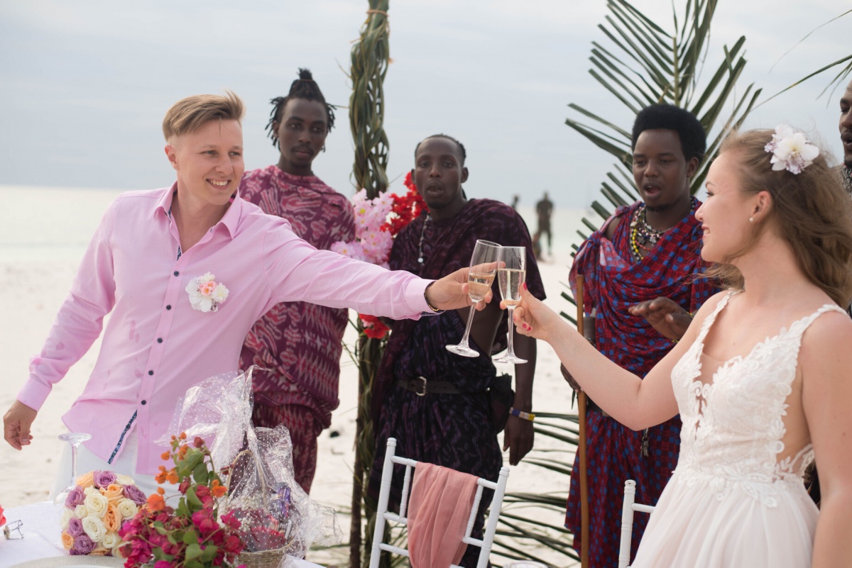 Mēs nevarējām oficiāli reģistrēt laulību Āfrikā, jo vietējā laulības apliecība Eiropā nav derīga. Tāpēc vispirms mēs divatā lidojām uz Zanzibāru, Indijas okeāna krastā noorganizējām ceremoniju tikai mums, un, ierodoties mājās, oficiāli sarakstījāmies Rīgā un sarīkojām nelielu ballīti mīļajiem ārpus pilsētas.
