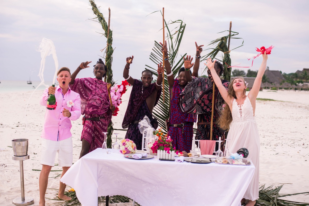 Pirms lidošanas caur Instagram es atradu vietējo fotogrāfu un sāku ar viņu sarakstīties, paskaidroju, kādi ir mūsu plāni un kā mēs iedomājamies šo notikumu, cik gaišas un interesantas fotogrāfijas vēlamies iegūt. Par laimi, šis cilvēks izrādījās gan fotogrāfs, gan organizators vienā personā. Viņš jautāja mums par mūsu vēlmēm attiecībā uz rotājumiem, uzkodām, vietām. Jau Zanzibārā, dienu pirms ceremonijas, viņš ieradās mūsu viesnīcā, kur visu sīki apspriedām.