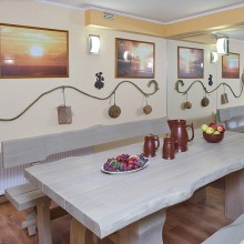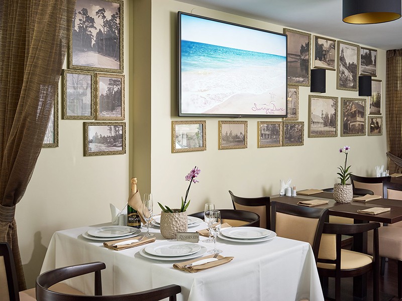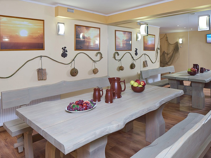 Завтрак (включен в стоимость проживания) для гостей нашего отеля — сервируется в ресторане c 8:00-10:00. В нашем изысканном ресторане с 10:00 -22:00 при свете свечей, под негромкую музыку, вы можете попробовать лучшие традиционные прибалтийские и европейские блюда, поданные вежливыми и услужливыми официантами.