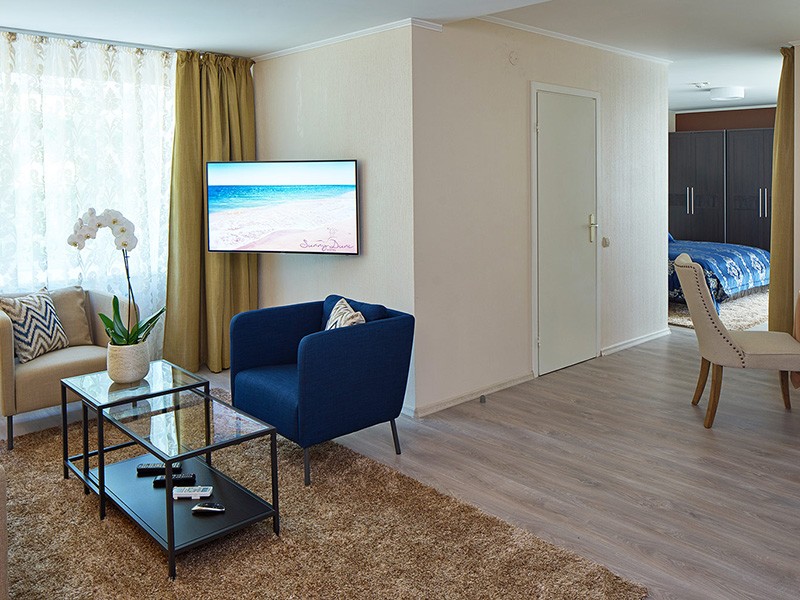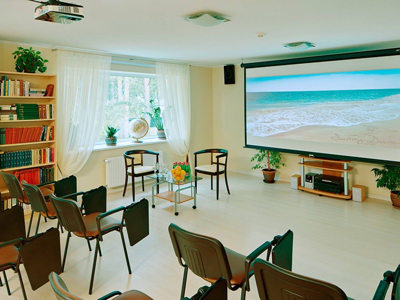Еще одним преимуществом отеля «Sunny Dune » является наличие многофункционального конференц-зала на 50 мест, рассчитанного как на проведение конференций, переговоров, семинаров, так и на организацию различных корпоративных мероприятий.