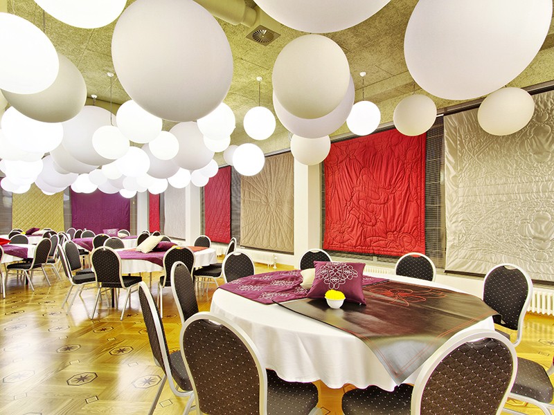 Рекомендуем Вам провести торжественное событие в одном из банкетных залов изысканного ресторана „LIELUPE”. Празднично декорированный и с великолепным видом на парк зал „MARIENHOF”, вмещает в себя до 250 гостей. Бар „БЕЛАЯ ДЮНА” с открытой террасой и романтическим видом на море, расположенный на 10 этаже гостиницы, станет идеальным местом для организации мероприятия до 80 гостей. Мы позаботимся о разработке свадебного меню, которое порадует даже самых тонких гурманов – предлагаем сочетание латвийской, русской и мировой кухни. Меню будет составлено, основываясь на Ваших пожеланиях.